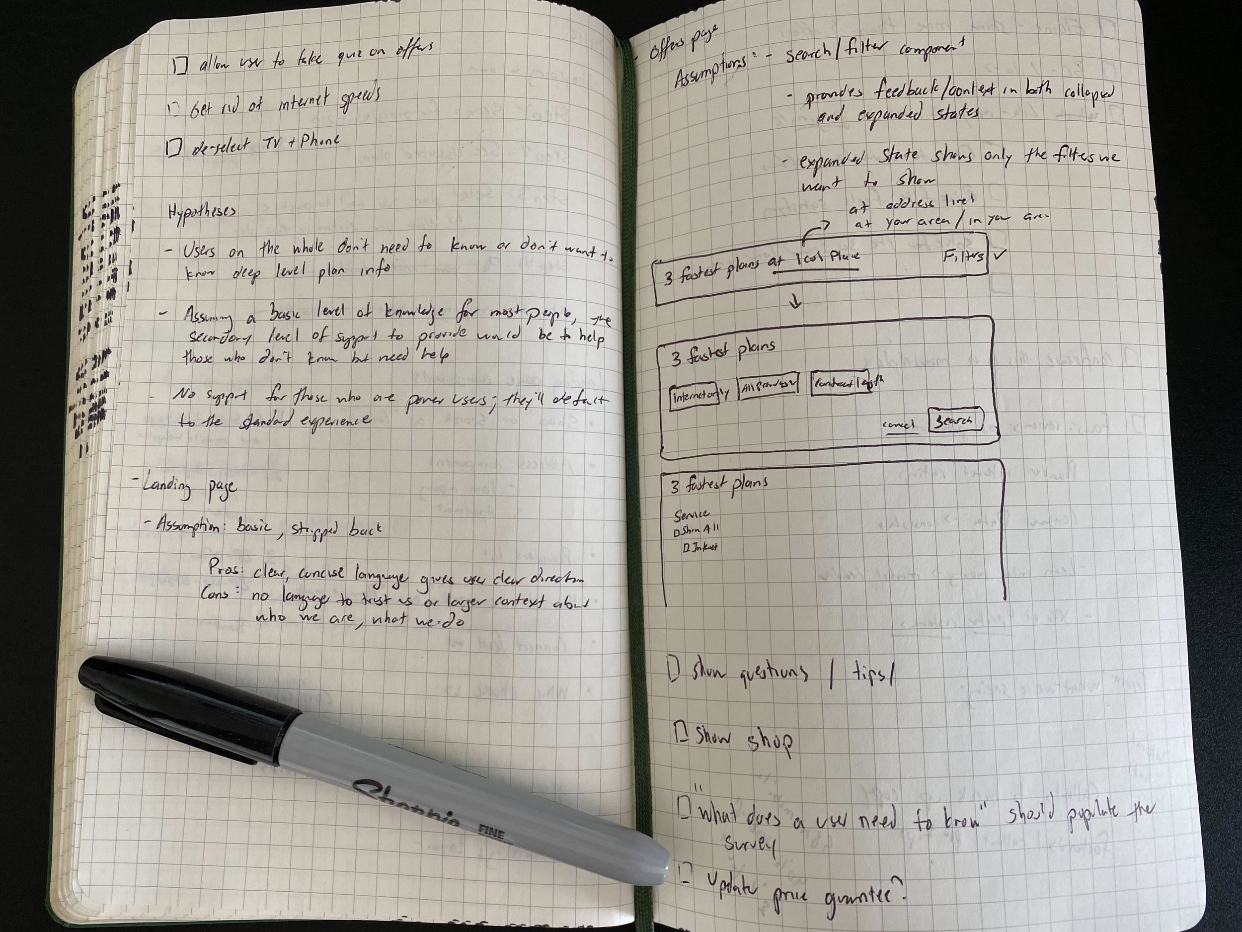 Research: I conducted market research to crystallize our feature set. I also had been the lead product designer on two years worth of feature testing prior to this project in the TV/Internet space so I was a subject matter expert in purchasing TV/Internet.