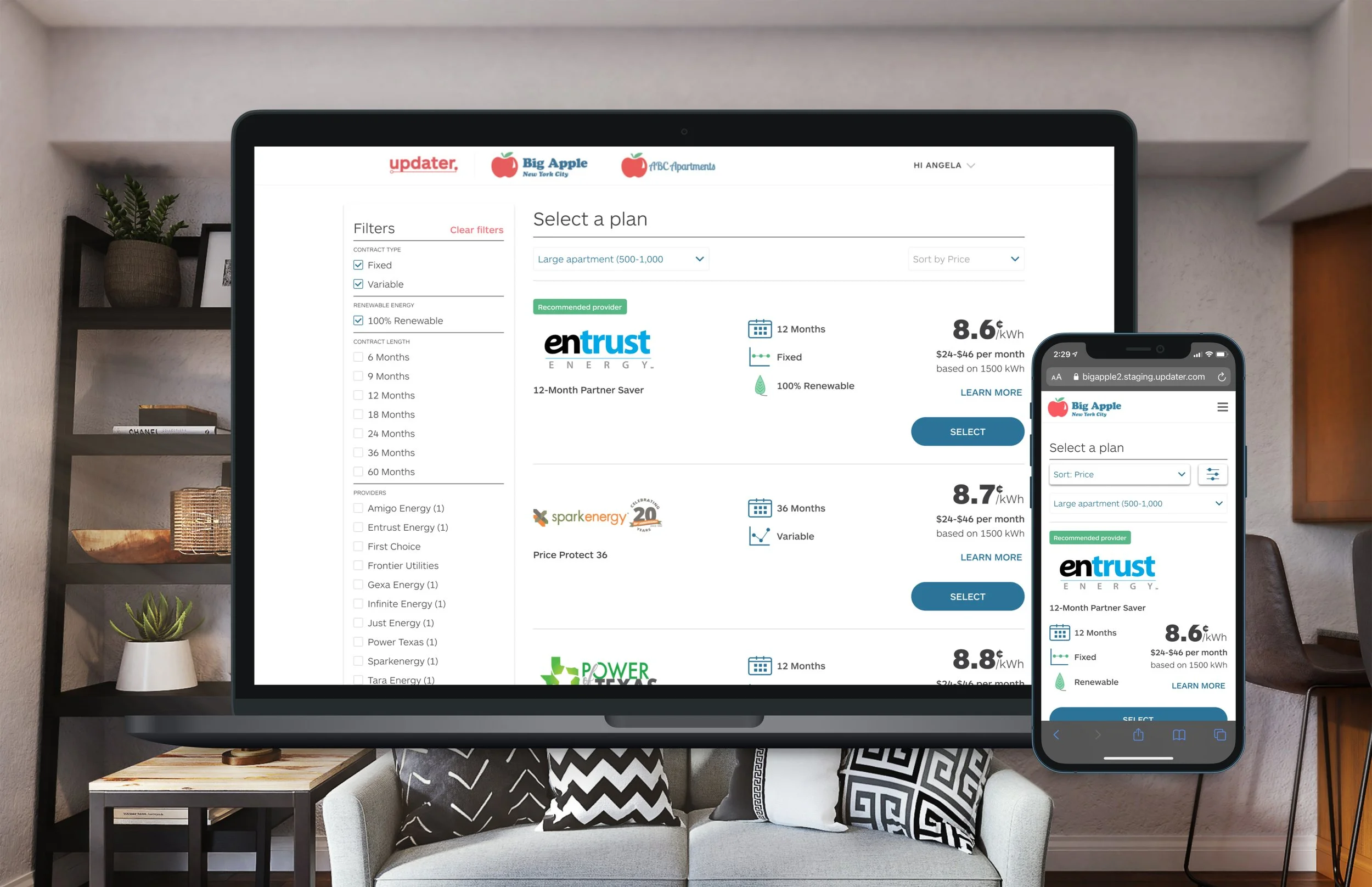 What Updater provided was a consolidation of all the providers’ and their rates in one space, and allowed the user to sign up in one space. Updater’s integration with WattBuy allowed us to finally connect the user with the provider, to allow for provider selection and plan enrollment to happen seamlessly. With this integration finally available, our two main objectives were